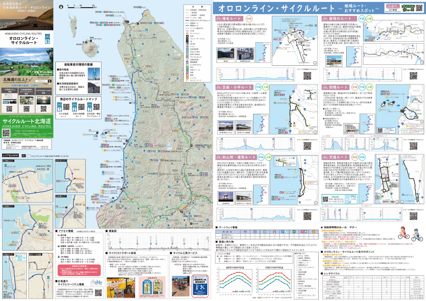 サイクルルート 2025.09.25 目次 オロロンラインサイクルルートオロロンラインサイクルルートマップ留萌川サイクリングルートマップ【関連リンク】 オロロンラインサイクルルート オロロンライン・サイクルルートは北海道内9つ目のサイクルルート! 増毛町から天塩町までの8市町村を結ぶ全長145.4kmのロングルート。 日本海沿岸の美しい風景、歴史遺産など、数多くの魅力的なスポットが楽しめるルートです。 オロロンラインサイクルルートマップ オロロンラインサイクルルートマップ A3(PDF4.5MB) 留萌川サイクリングルートマップ 留萌川サイクリングルートマップ A3(PDF6.9MB) PDFファイルを閲覧するには?PDF形式の文書を閲覧するには、Adobe Acrobat Reader(無料)が必要です。ご利用のスマートフォンやパソコンにインストールされていない場合は、Adobeリンクページよりダウンロード・インストールしてご利用ください。 【関連リンク】 cycle-hokkaido.jpサイクルルート北海道「サイクルルート北海道」は、サイクリングルートの道路及び周辺施設と... 留萌市ホームページ留萌市ホームページ留萌市公式ホームページです。北海道留萌市 - その美しさに息を呑むほど... 留萌観光協会公式サイト「留萌で…」北海道留萌市留萌観光協会公式サイト「留萌で…」北海道留萌市留萌市の観光情報、飲食店、宿泊、グルメ、特産品、イベント情報、アク... 留萌開発建設部留萌開発建設部北海道開発局留萌開発建設部のウェブサイトです。留萌開発建設部に関す... かわたびほっかいどうかわたびほっかいどうかわたび ほっかいどうでは北海道を流れる川や湖などの「水辺」の魅力を...